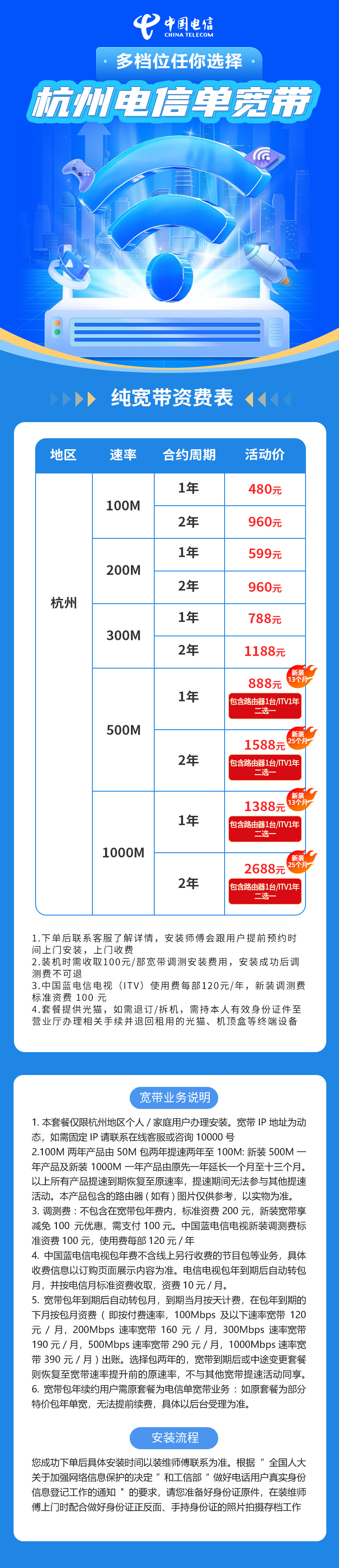 浙江电信单宽带二年